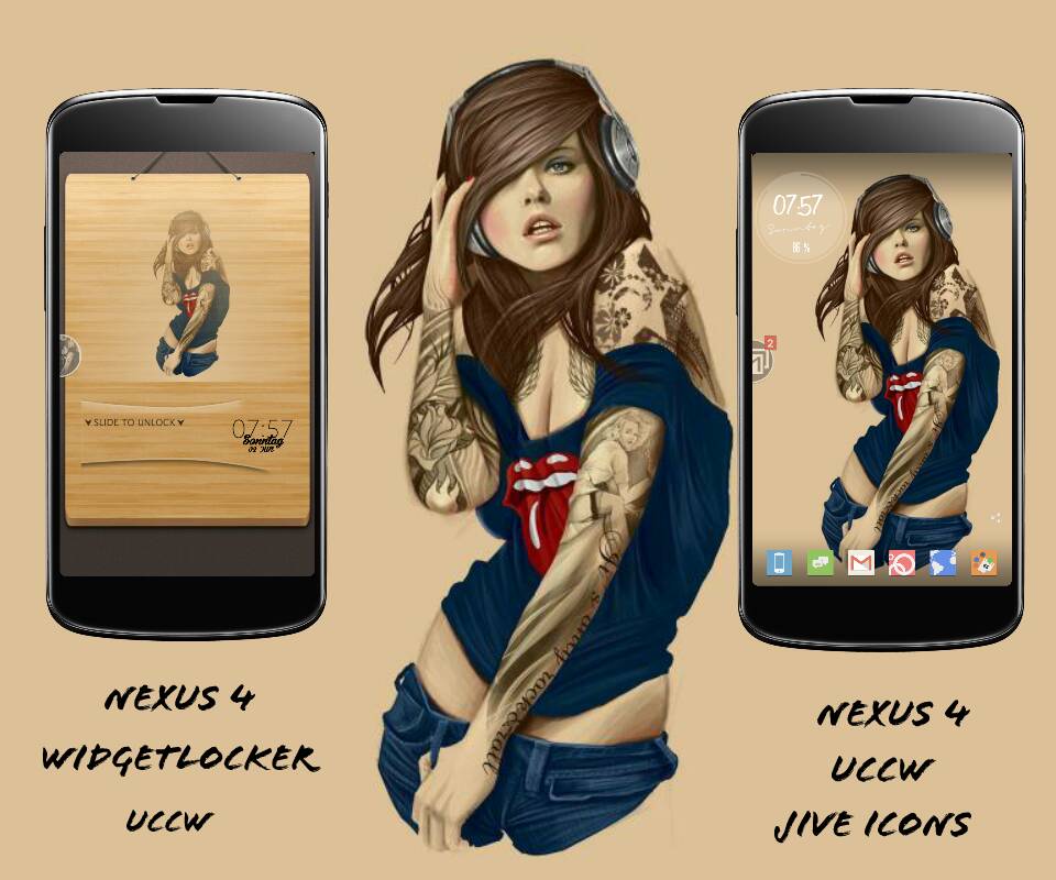 Das Wallpaper mit der Frau habe ich mit PS über ein Elite6 Wallpaper gelegt und überblendet.