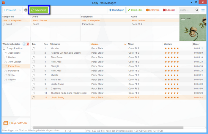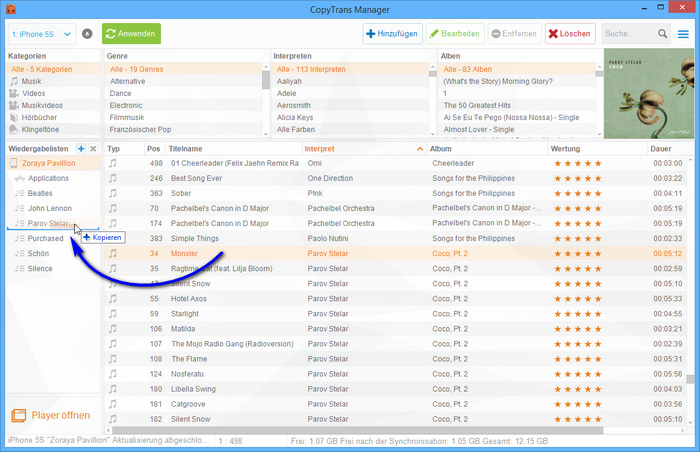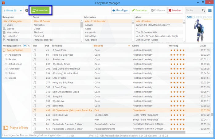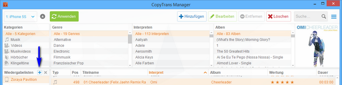 Die Musiktiteln könnt Ihr noch ganz individuell mit CopyTrans Manager bearbeiten.