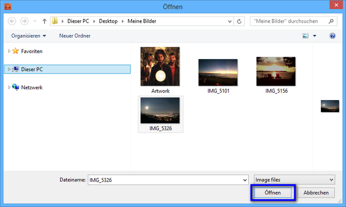 Wählt am PC ein Cover oder Bild eurer Wahl aus und klickt auf "Öffnen".