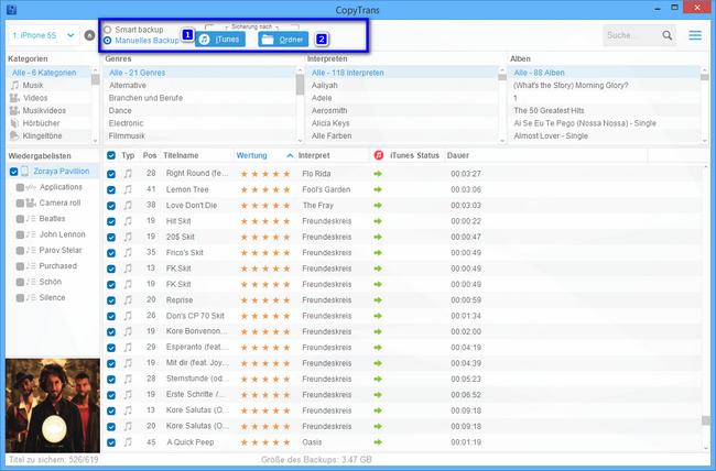 CopyTrans ist eine schnelle Lösung um Musik, Videos, Klingeltöne, Podcasts, Hörbücher, Bücher, PDF Dateien, Einkäufe, Wiedergabelisten und Tags etc. vom iPhone, iPad und iPod auf den PC zu kopieren.