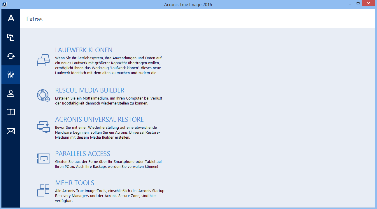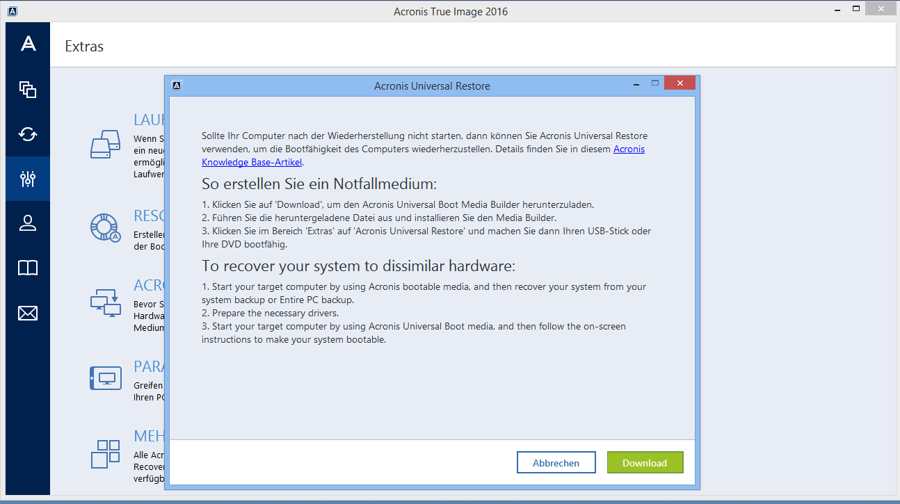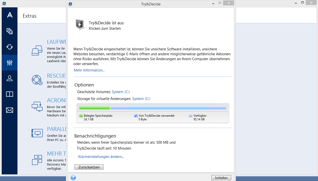 Die Beta macht einen sehr guten Eindruck. Es ist leicht zu bedienen und recht übersichtlich. Von den Notfall CDs lässt sich nur die Linux Version anfertigen, der Download zu WinPE Version führt zu einer Fehlerseite.