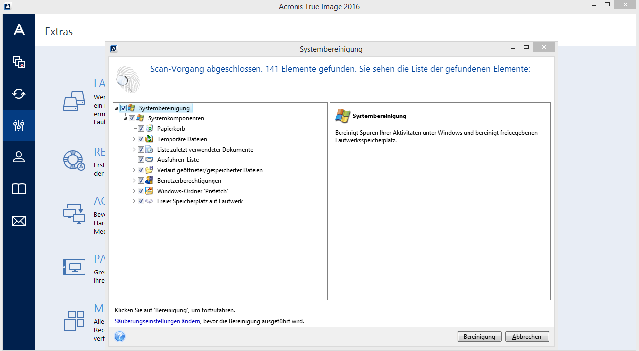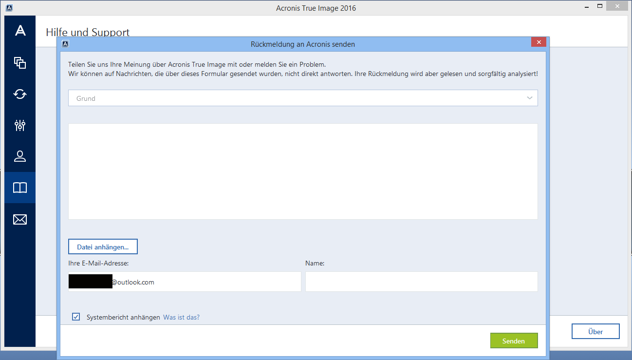 Auch ist mir aufgefallen, dass über die CD erstellte Backups nicht automatisch erkannt werden, sondern manuell zugefügt werden müssen. Ein weiteres Problem ist, dass während und nach dem erstellen eines Systemberichtes True Image eine weile nicht reagiert. Nach dem erstellen musste ich gut zwei Minuten warten bis ich es True Image wieder nutzen konnte.
