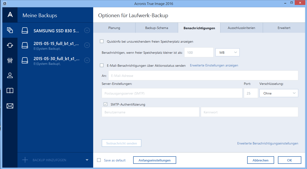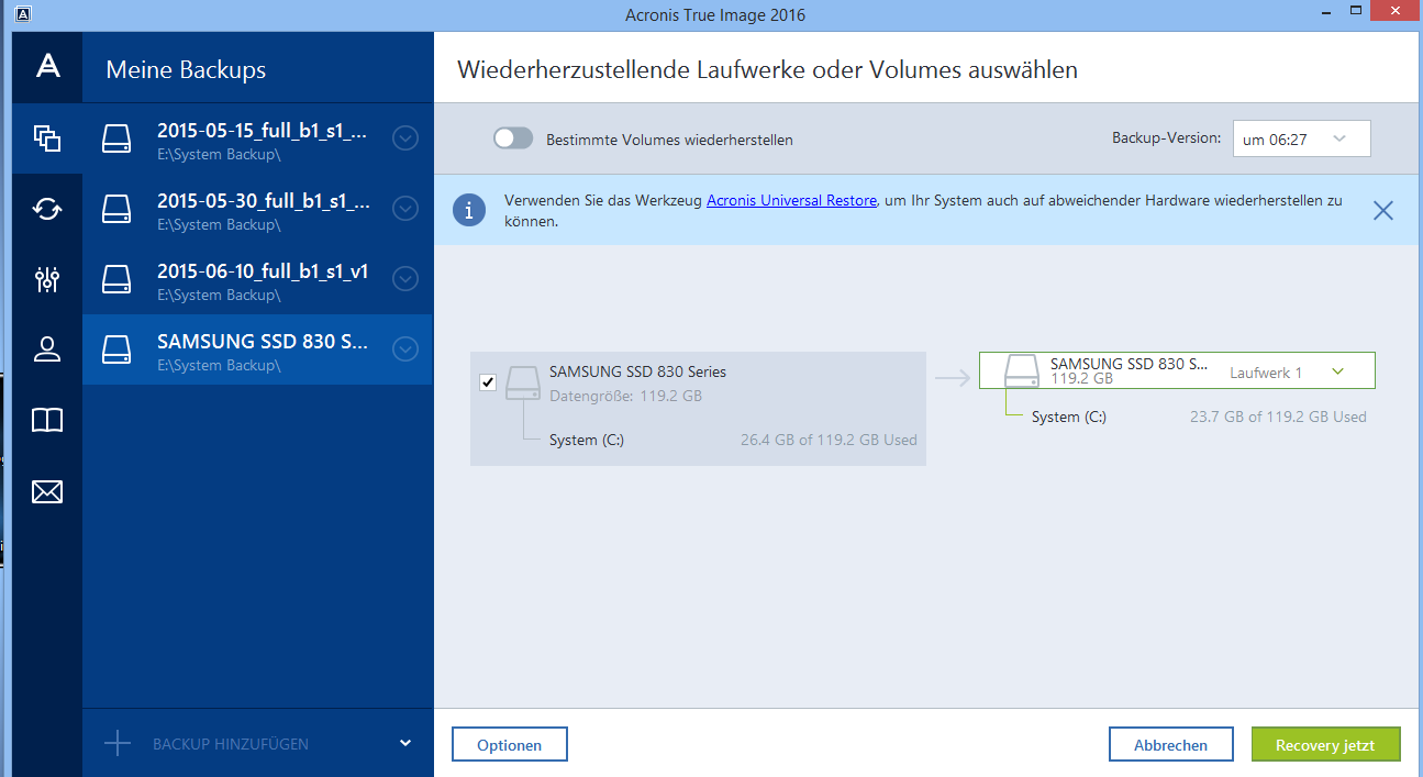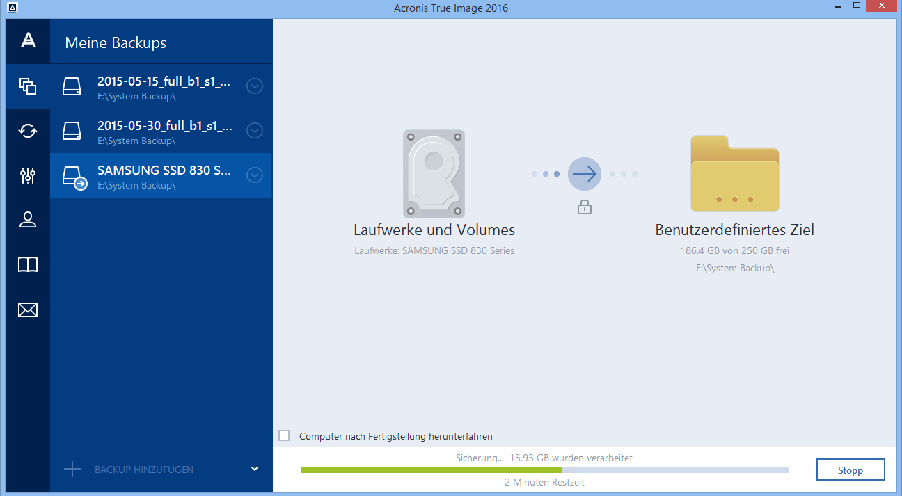 Hier mal ein paar Bilder und Zeiten von der aktuellen True Image 2016 (Ultimate) Beta Version.