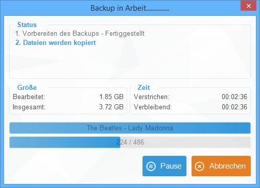 3. Wählt auf der oberen Programmleiste "Smart Backup" und klickt auf "Backup starten".