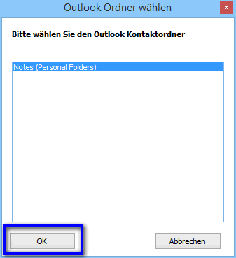 2. Im Anschluss habt Ihr die Möglichkeit, einen Ordner aus Outlook auszuwählen. Bestätigt mit einem Klick auf "OK".