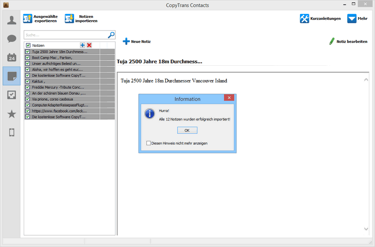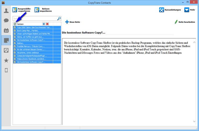 So einfach könnt Ihr mit CopyTrans Contacts Notizen zwischen Outlook und iOS Gerät ohne iTunes verwalten. Hier nochmal den Link zum Download von CopyTrans Contacts: