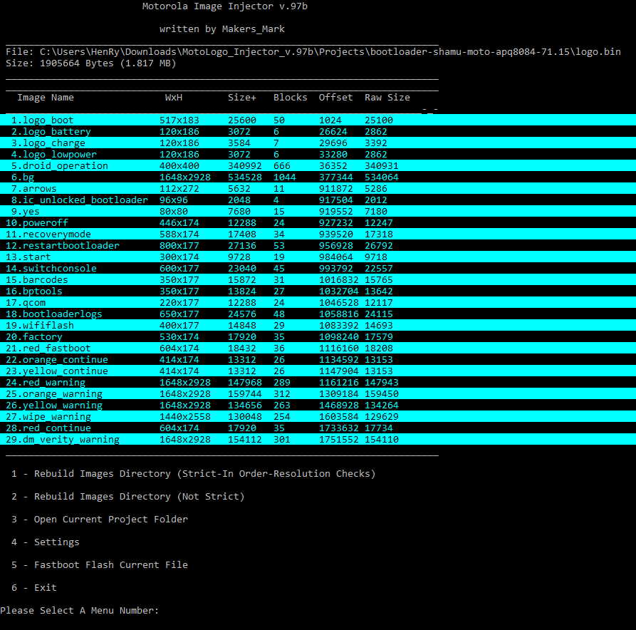 Mit MotoLogo Injector v.97b.zip - Bootloader PNG's auf dem Nexus 6 ändern/ersetzen