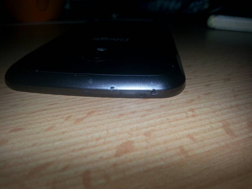 Hier die Bilder, leider etwas verspätet. Das auf der Unterseite vorne sieht aus wie ein Kratzer im Display, ist aber nur die Folie.