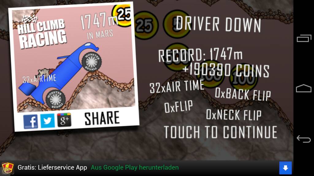 6 Meter mehr, dann war ich zu unvorsichtig mit dem Gasfuß