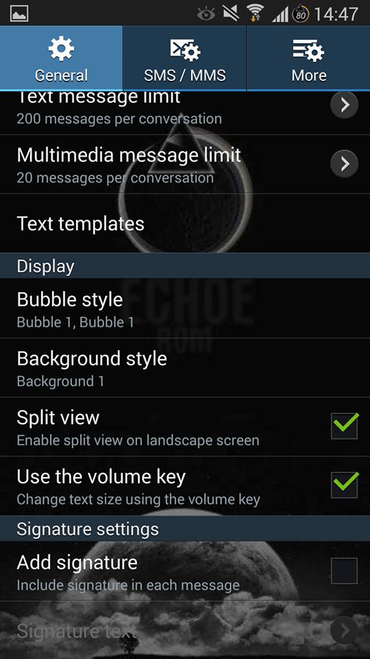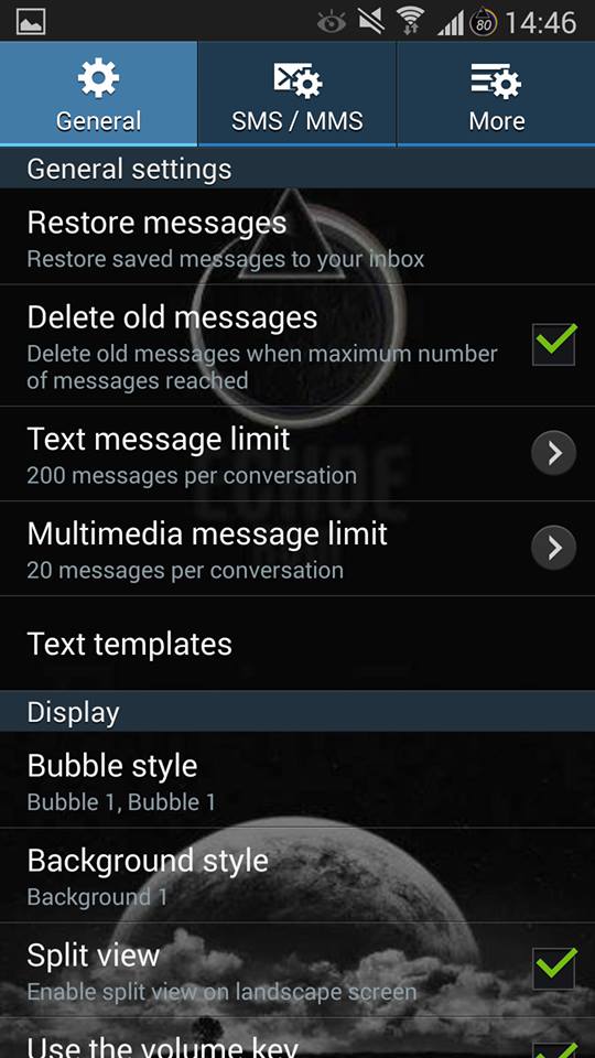 *aktiviert Split View Mode in SMS/MMS Settings