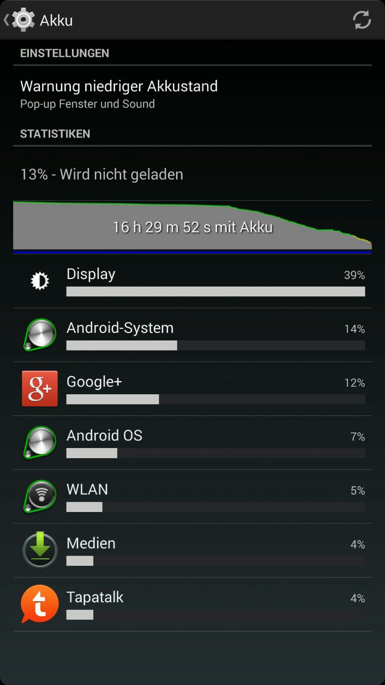 Influx IconsDie Batteriebar wechselt bei 15% Akku die Farbe von grün zu rot.