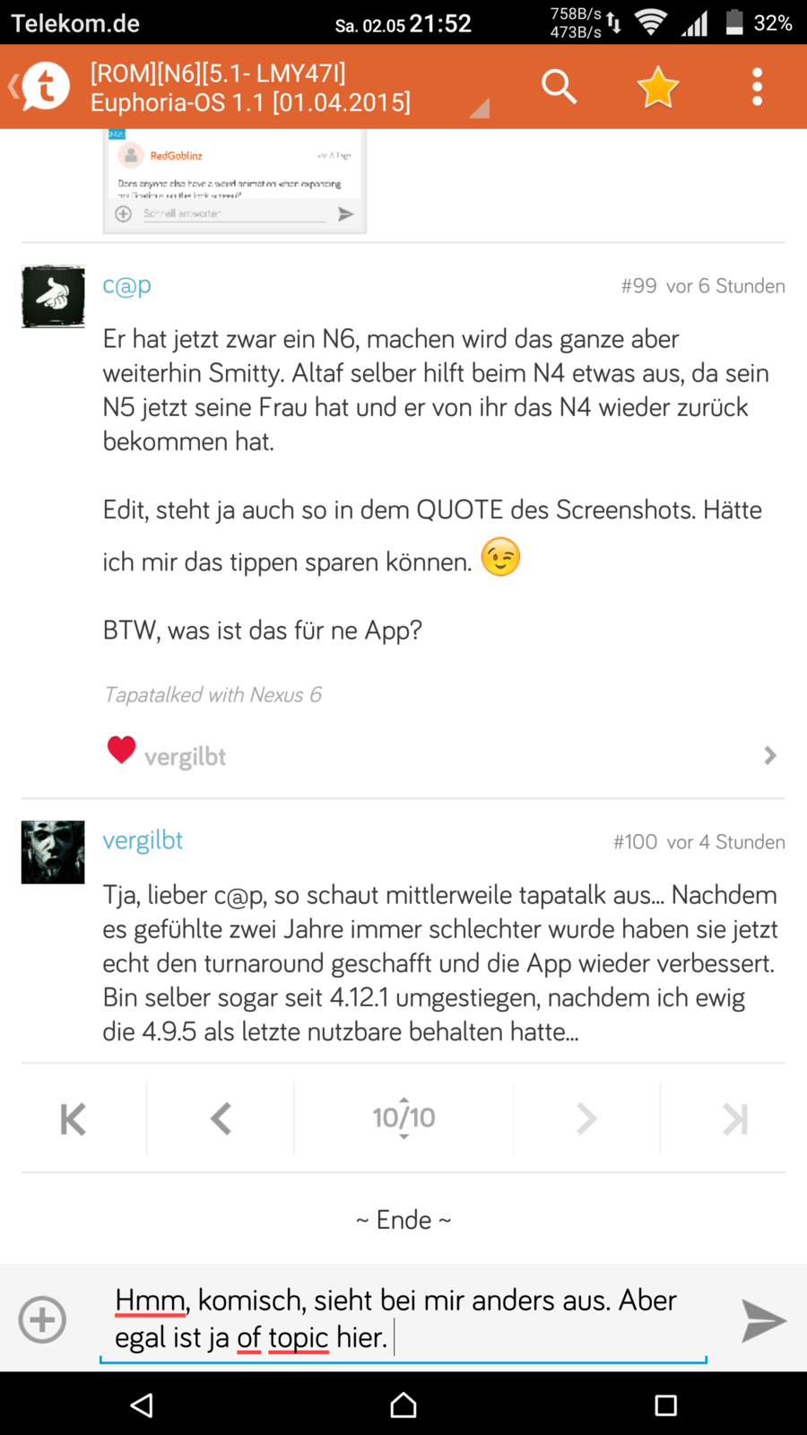 [emoji2] Hab ihn auch wieder drin. Hatte noch die Gapps aktualisiert und danach den FC vom PlayStore, der mag die alten Daten nicht. Löschen hilft, man muss nur sehr schnell sein, das N6 ist da schon ein Turbo. Beim N5 gestern gings einfacher. [emoji6]
