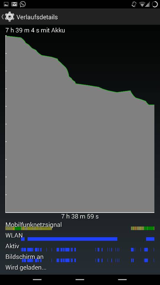 Komischerweise war ich nur im Hochschul-Wlan unterwegs und hatte sogar lange Zeit den Flugmodus an, keine Musik gehört, sondern nur ab und an gesurft, gechattet und getapatalket. Einmal kurz ein Spiel gespielt (5min ca.) und das war's. Nichts besonderes und normale Nutzung unter der Woche, weswegen ich ja auch verwundert bin. Wär ich jetzt noch an der Hochschule und hätte richtig das Surfen angefangen wär ich nun vllt. nur noch bei 40-45%, wenn überhaupt.