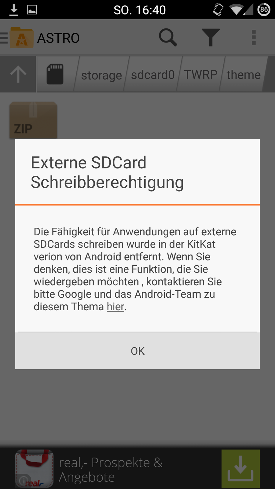 Das Problem dabei ist das Ich eine Meldung bekomme das die sd card schreibgeschützt ist und ich da nichts hin kopieren\verschieben kann
