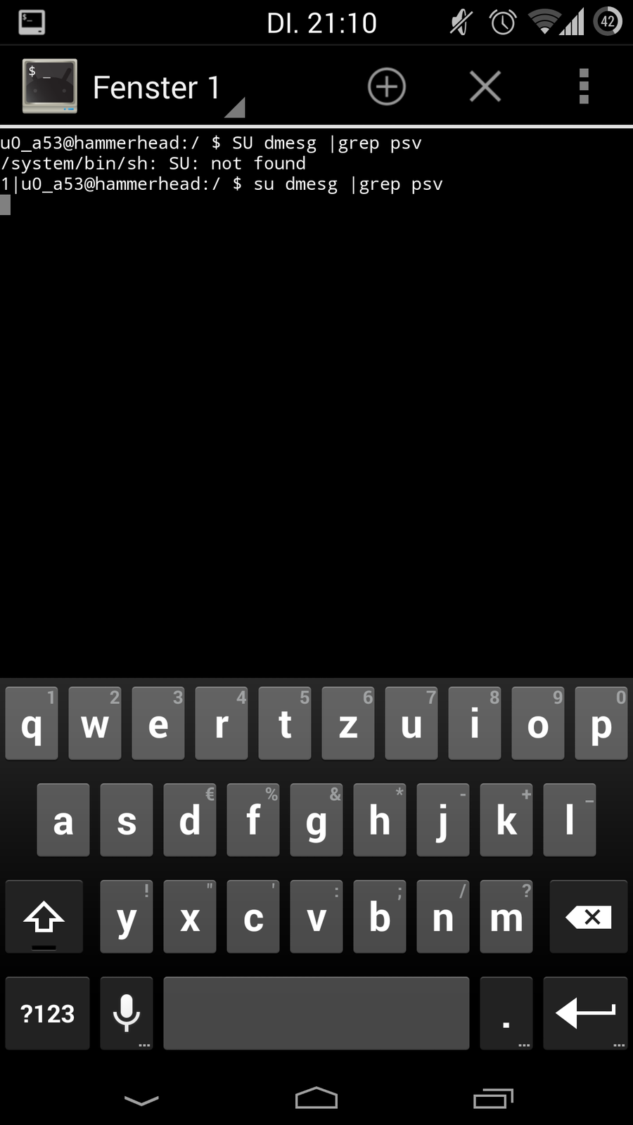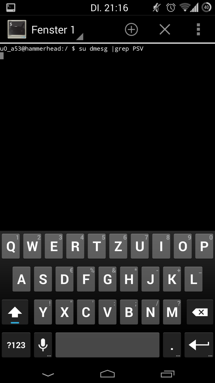 Wenn ich das per root explorer mache steht in der Text Datei 0. Über den terminal Emulator funzt es nicht. Irgendwie bleibt der hängen und ich kann nichts mehr eingeben