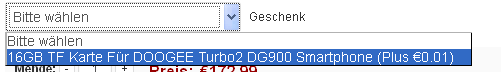 Einmalig zum Vorverkauf des Elephone G6 gibt es eine 16GB TF-Karte geschenkt. Diese Aktion ist nur für den Vorverkauf bis zum 09.10.2014 bestimmt. Danach gilt diese Aktion nicht mehr! Dabei müsst Ihr darauf achten, dass Ihr manuell die 16GB TF-Karte auch als Geschenk zu eurer Bestellung hinzufügt.