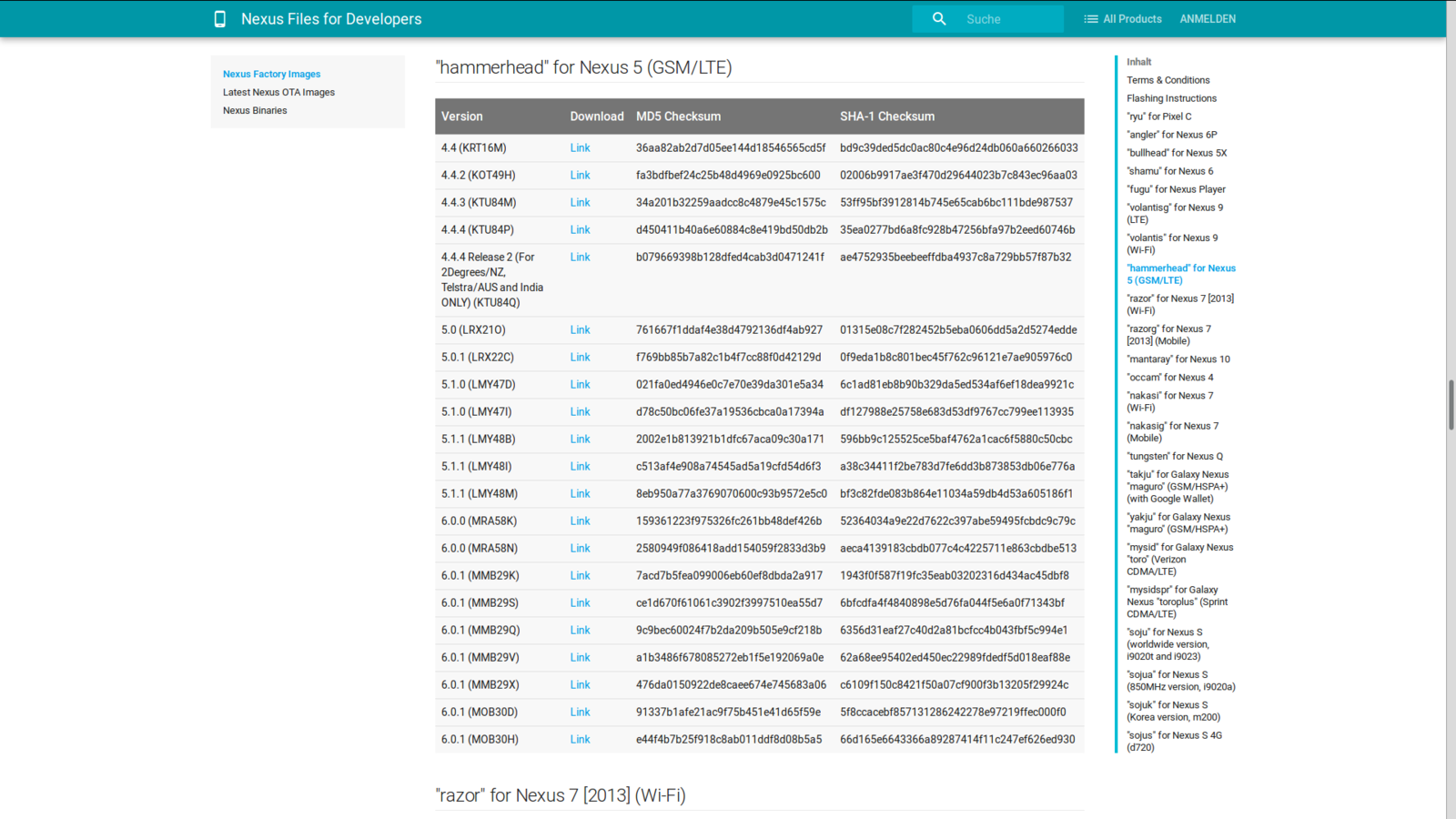 Zufällig eine Idee, wieso 7 verschiedene Versionen von Stock 6.0.1 zur Auswahl stehen?