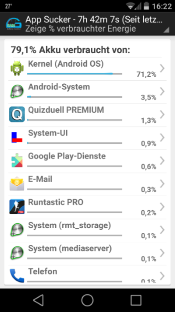Kann ich mal machen, aber ja ich gehe vom Kernel aus da ich nichts ändere als den Kernel zu flashen. Ich nutze das Nexus eigentlich jeden Tag gleich (selbe Ort, liegt meistens rum, etwas Quizduell und Texten).