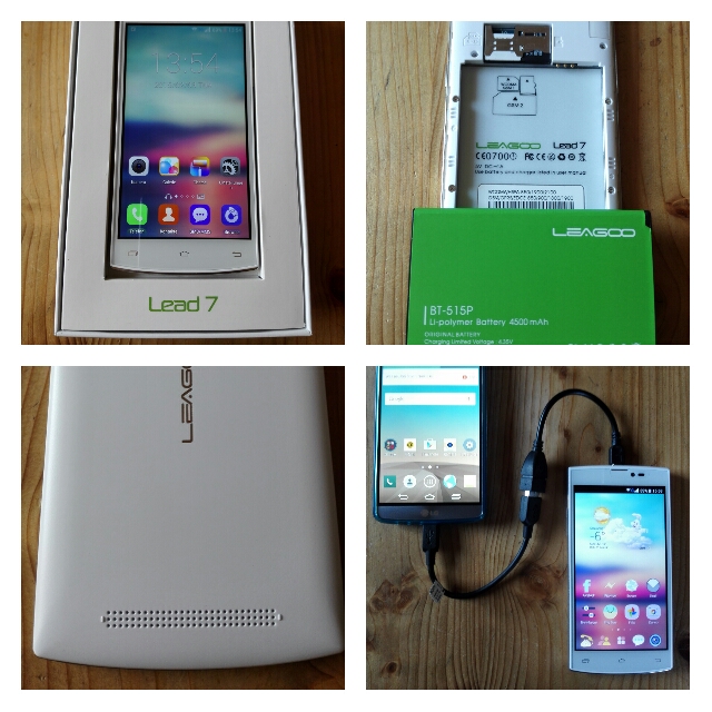 Leagoo liefert das Lead 7 in einer feinen, grünen Verpackung aus in der Nichts fehlt: Euro-Lader, USB- und OTG Kabel, Headset und der 4500 mAh Akku liegen separat in der Box; eine Displayschutzfolie ist perfekt aufgebracht.