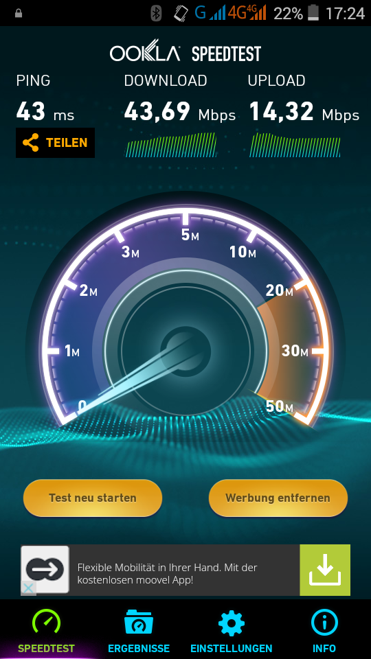 Beim LTE patzt das Meizu dann ein weiteres Mal. So ist das für Deutschland wichtige Band 20 nicht vorhanden. Da ich bei Congstar auch nur mit max. 7.2Mbits unterwegs bin habe ich auf einen Screenshot vom Speedtest verzichtet. Ich kann jedoch sagen, dass es beim Surfen keine nennenswerten Unterschiede zum OnePlus One gab. Der LTE-Faktor ist ein Punkt der einige hier sicher vom Kauf abhalten wird, aber mich persönlich stört es aufgrund der mangelnden LTE-Verfügbarkeit meines Anbieters nicht.