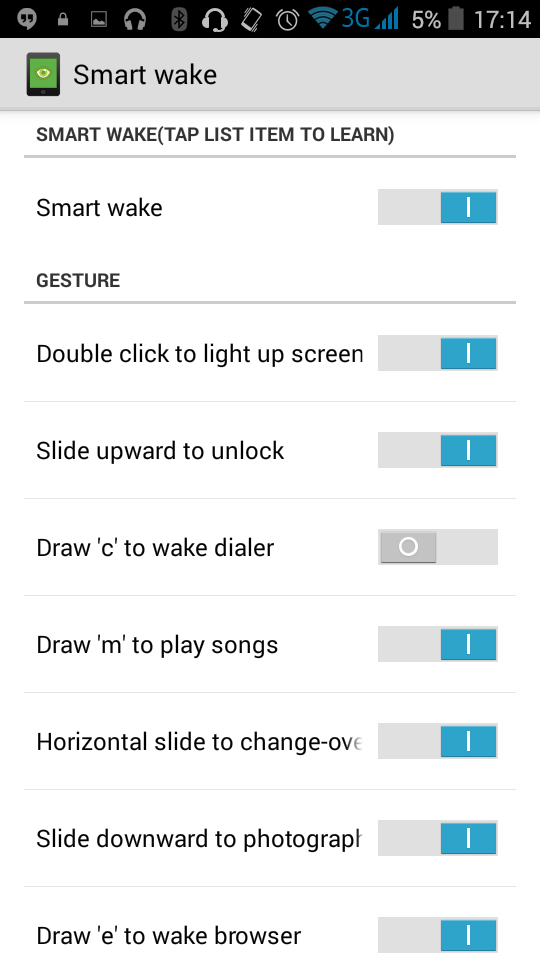 Weiterhin finden sich im Bluboo weitere Features, wie MiraVision, HotKnot (MediaTek´s Gegenstück zum NFC) oder Power ON-Off nach Zeitplan. Das X6 bringt ausserdem das “Smart Wake” Feature mit. So könnt ihr auf das ausgeschaltete Display klopfen um das X6 zu wecken oder zeichnet einen Strich nach unten, um direkt die Kamera zu starten. Der Umfang dieser Funktion ist reichhaltig. Ich habe jedoch diverse Sachen deaktiviert, da teilweise Funktionen in meiner Hosentasche versehentlich gestartet wurden.
