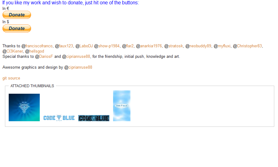 Und um Dir mal zu verdeutlichen das Code Blue nicht das Maß der Dinge ist, Franco XDA Thread Zugriffe = 6 Mio+ Code Blue = 1,2 Mio ( closed ) und schau dir das Bild an im Anhang.