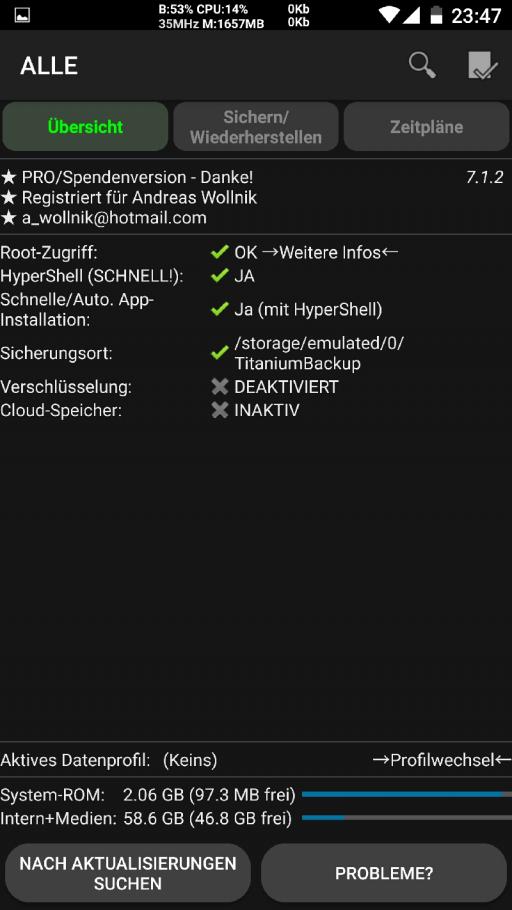 So, ich wollt es jetzt genau wissen mit der M preview auf dem N6 und TiBu: Habe mal MultiRom deinstalliert und dieses aktuelle Build der M preview von "okibi" laut Anleitung geflasht mit M-Bootloader und -Modem, inkl. format data im TWRP - TiBu funzt!