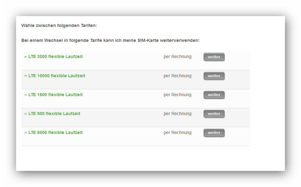 Hier habe ich dann Flat für Internet mit 1GB, SMS, Handynetze.