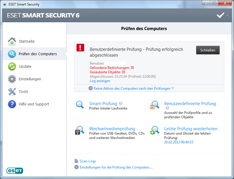 Was das Thema angeht, dass ein ausschließliches Prüfen auch Beseitigen bedeuten soll, stehen leider deine Erwartungen den Erfahrungen bzw. dem User-Feedback aus 6 Generationen an ESET-Produkten in diesem Falle gegenüber - deswegen bieten wir für Tiefenprüfungen auch die Option in der Oberfläche, als auch im Kontextmenü an. Im Kontextmenü bloß eben nicht an erster Stelle, da darüber die Masse der Anwender nur fix "eine Meinung" haben möchte.Mit ausschließlich Prüfen fängt es doch schon an. Ausschließliche Prüfung ist nicht die Bezeichnung. Wenn ich meine Festplatte durch "Prüfen mit Smart Security" in den Vollscan schicke, erwarte ich von einem Virenscanner doch keinen Probelauf. Ich mache doch keinen Probelauf der 5 Stunden dauert, sehr sinnvoll. Noch schlimmer, der Virenscanner lässt dem Anwender mit den positiven Befunden hilflos alleine im Wald stehen. Das ist wirklich ein Unding. Nach dem Scan muss dem Awender die Option gelassen werden, was er mit den positiven Befunden nun anfangen möge. Wenn jemand das nur als Probelauf verwenden möchte, kann er das gerne tun und lassen wie er möchte. Niemand wird gezwungen auf die möglichen Befunde zu reagieren.