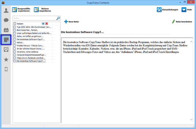 Mit CopyTrans Contacts könnt Ihr selbstverständlich nicht nur iPhone Kontakte verwalten, sondern auch Nachrichten, iOS Kalender, Notizen, Erinnerungen, uvm. Auch könnt Ihr beispielsweise iPhone Daten nach Outlook, Gmail oder andere Cloud-Dienste übertragen. Erfahrt mehr über CopyTrans Contacts direkt auf der Produktseite: [size=18]CopyTrans Contacts Produktseite! [/SIZE]