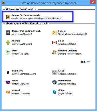 [size=14]2. Wählt im aufgehenden Fenster "Sichern Sie Ihr Adressbuch". [/SIZE]
