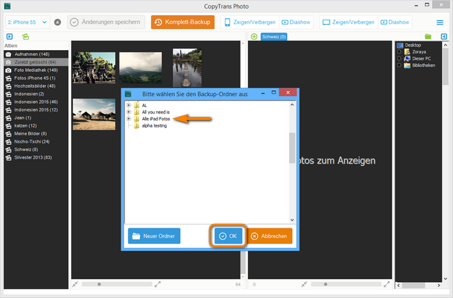 [size=14]3. Im nächsten Fenster habt Ihr die Möglichkeit, einen Zielordner festzulegen. Habt Ihr einen Ordner ausgewählt, bestätigt die Auswahl mit "OK".[/SIZE]