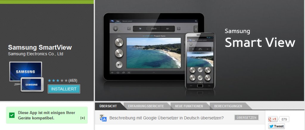 laut Aussage eines Freundes funktioniert smart view Version 4.0.0 von Samsung SmartView | Stile di vita | Samsung Apps | Samsung Contenuti e Servizi auf dem P5110.