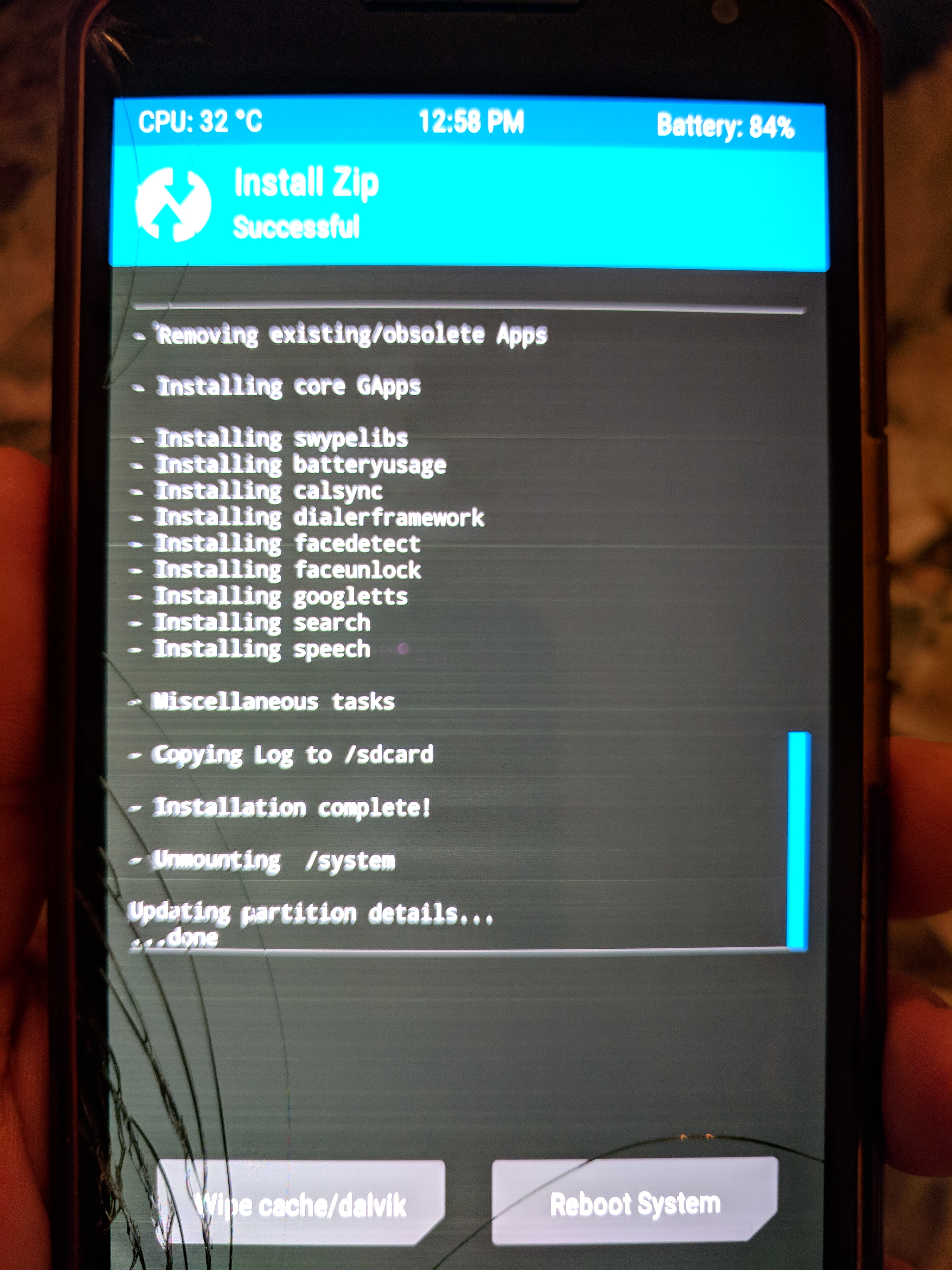 I've never manually formatted anything, I've never gone from F2FS, I tried to repair the system partition but nothing happened. I installed the Velocity 8.0 before the gapps 8.0 until everything is smooth, after I go into recovery I restore factory, wipe system, install rom install gapps and gapps do not install. I take a screenshot.