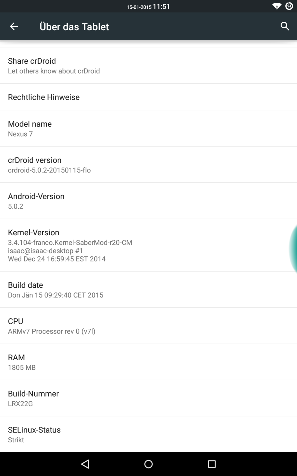 UNOFFICIAL crDroid Nexus7 -flo Build 11.01.2015 ist online.